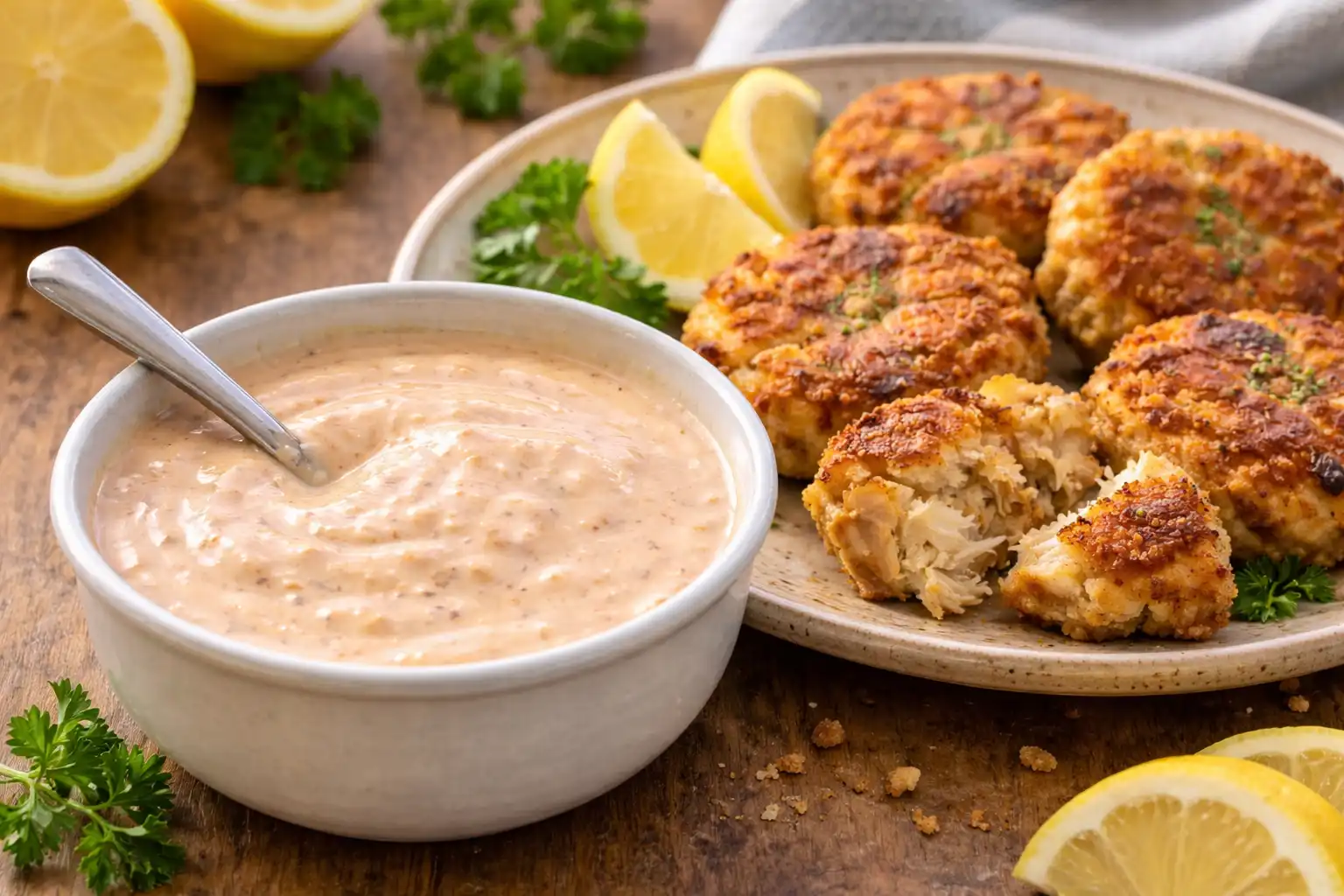 They are similar, but not always the same. A classic remoulade is more complex and often includes capers, pickles, or anchovies. This crab cake sauce is simpler, creamier, and designed to highlight the crab rather than dominate it.
